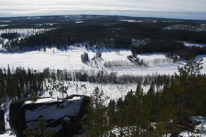 | Stupet ner mot Mjösjön och Mjösjöliden är mäktigt och lätt svindlande från kanten uppe på berget. |