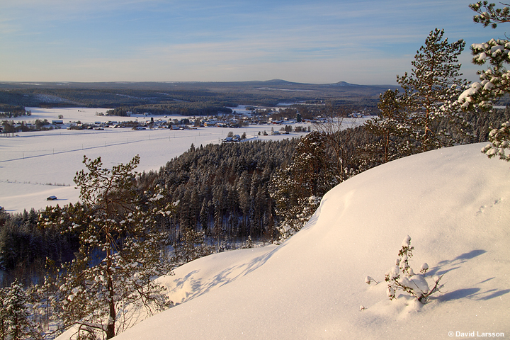Vy in mot Lillpite tätort från branten på bergets södra sida, vid horisonten ligger från vänster Skogberget och Snöberget.