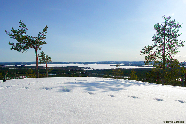 Vy söderut från Falkberget mot Svensbyfjärden med Vallsberget i bakgrunden.