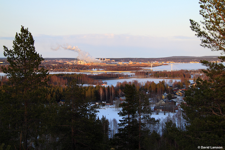 Vy in mot centrala Piteå från Ursberget med E4:bron över Piteälven närmast.