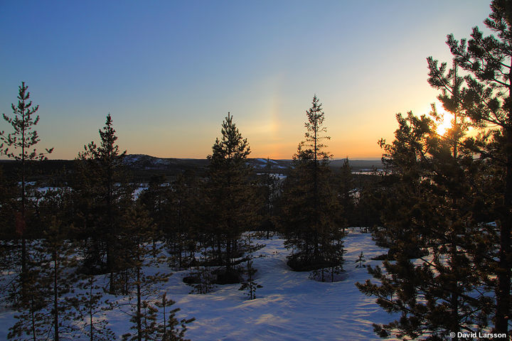 | Vy från västerut från den västra delen av berget med en lågt stående kvällssol. Här syns Fagersberget till vänster, Vallsberget syns i mitten över väg 373 och till höger skymtar Kalahatten i fjärran. |