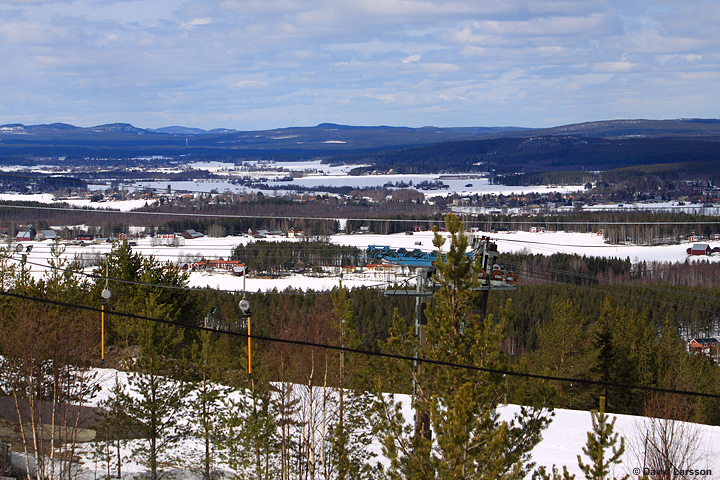 Vy mot Roknäs, Sjulnäs och Lillpite från startrampen, till höger i skuggan skymtar Gölaberget.