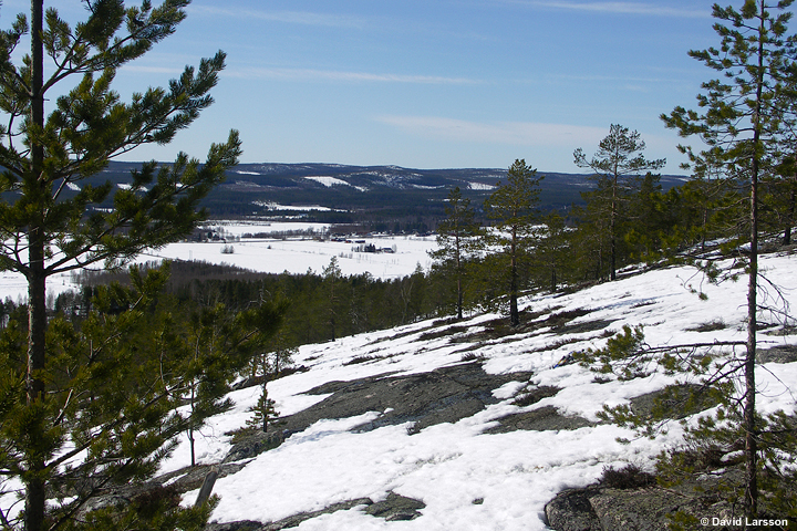 De sluttande berghällarna på Stormyrberget håller på att tina fram i aprilsolen.