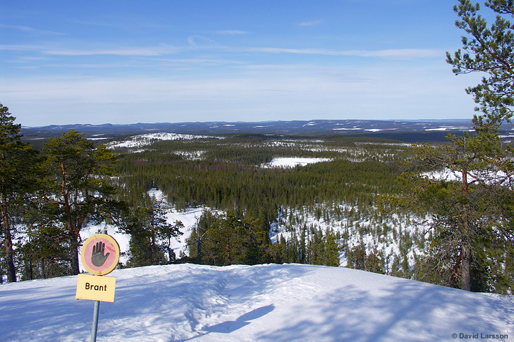 Utsikt från toppens norra del där bergssidan också är som brantast.